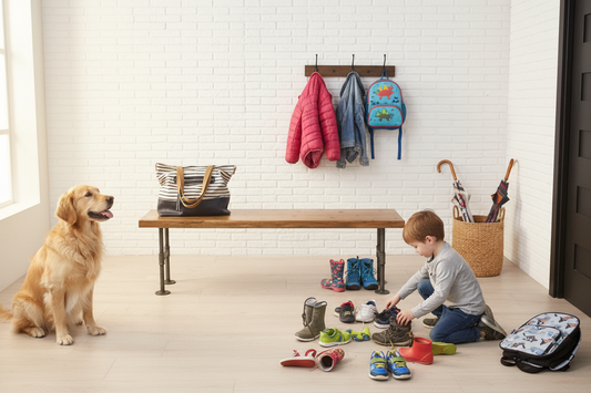 Industrial Pipe and Solid Wood Mudroom and Entryway Storage Bench, Solid Wood with Pipe Base