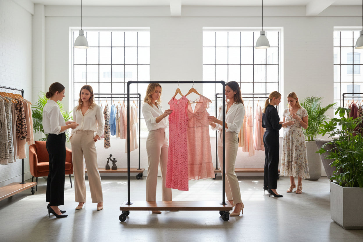 This Industrial Style Vintage Clothing Rack combines robust construction with timeless design. Built from ¾" black pipe and iron fittings paired with rustic solid wood shelving, it delivers exceptional durability for retail environments or residential storage. The heavy-duty frame supports substantial weight while the industrial aesthetic complements modern and vintage interiors alike. Measuring 43"W × 55"H × 15"D, this American-made piece offers practical functionality without compromising on style. Perfect for boutiques, showrooms, or creating organized display space at home.