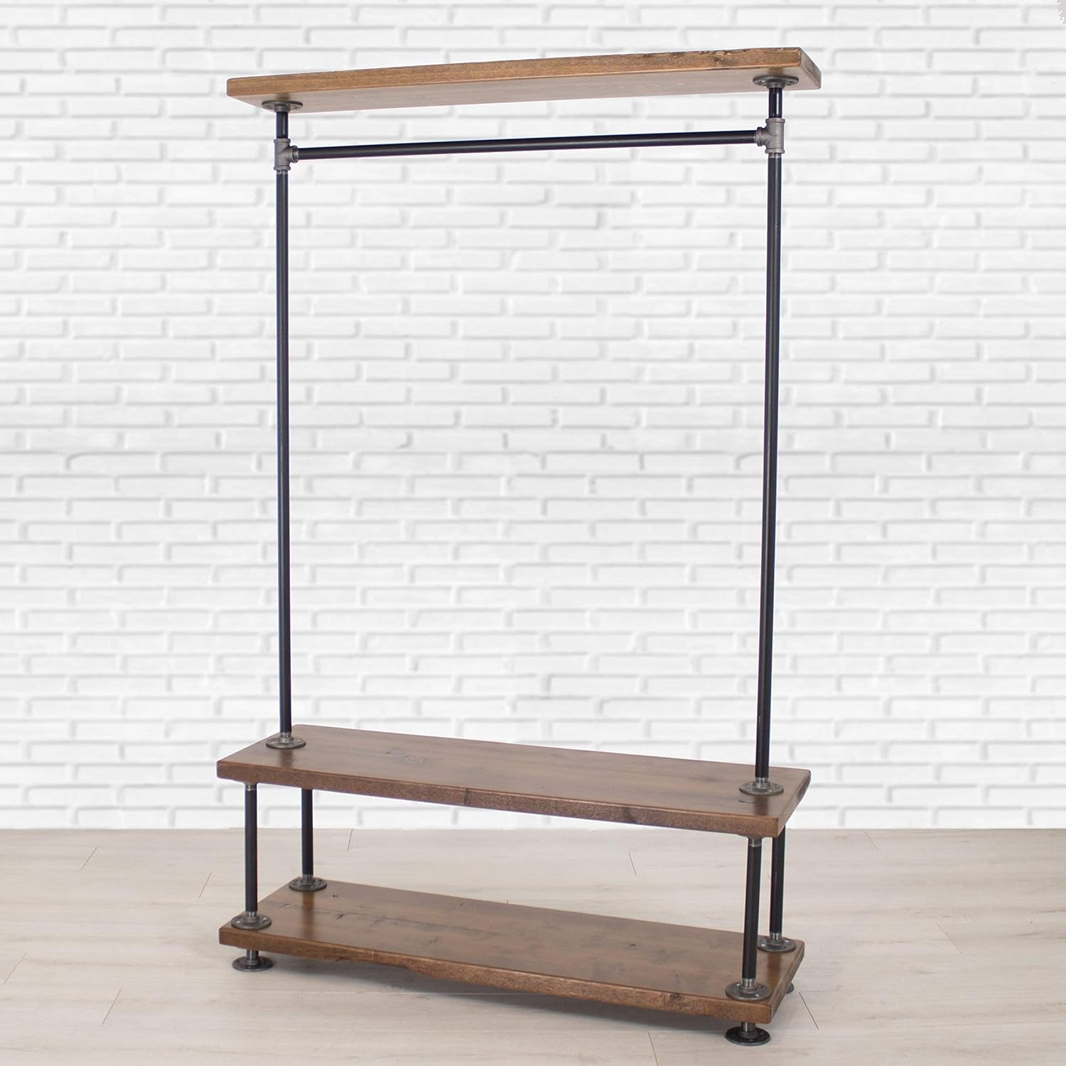Industrial Pipe Clothing Rack with Wood Shelving
