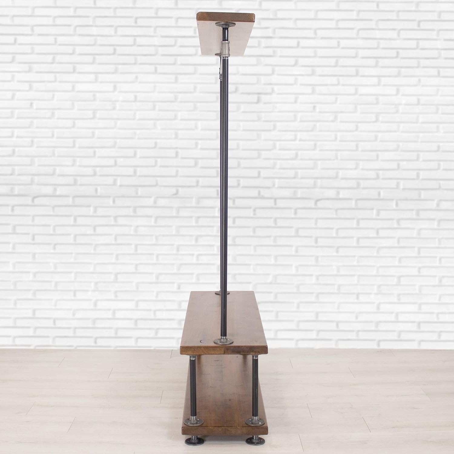 Efficiently organize and display your clothing with our Industrial Pipe Clothing Rack. Its sturdy, powder-coated steel design makes it heavy-duty and durable. The added wood shelving provides extra storage space for your convenience. Perfect for any industrial-inspired space.