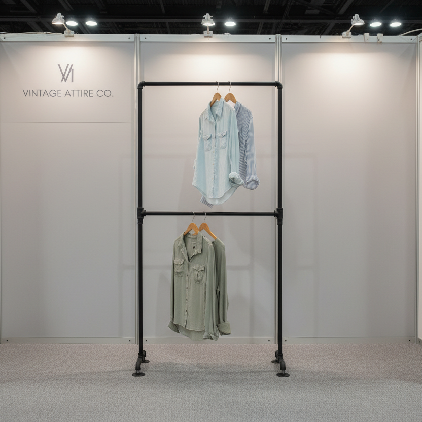 Industrial Pipe Double Row Clothing Rack This robust double-row clothing rack combines industrial aesthetics with practical functionality. Constructed with sturdy pipe framework, it accommodates substantial garment loads while maintaining a sleek, modern appearance. The dual-row design maximizes hanging capacity, making it ideal for retail environments where space efficiency matters. For home use, it serves as an attractive storage solution for seasonal wardrobes or overflow clothing. The industrial pipe construction ensures durability and longevity, while the open design allows easy access and visibility of your collection. Whether organizing a boutique or managing household storage, this rack delivers reliable performance with contemporary style.