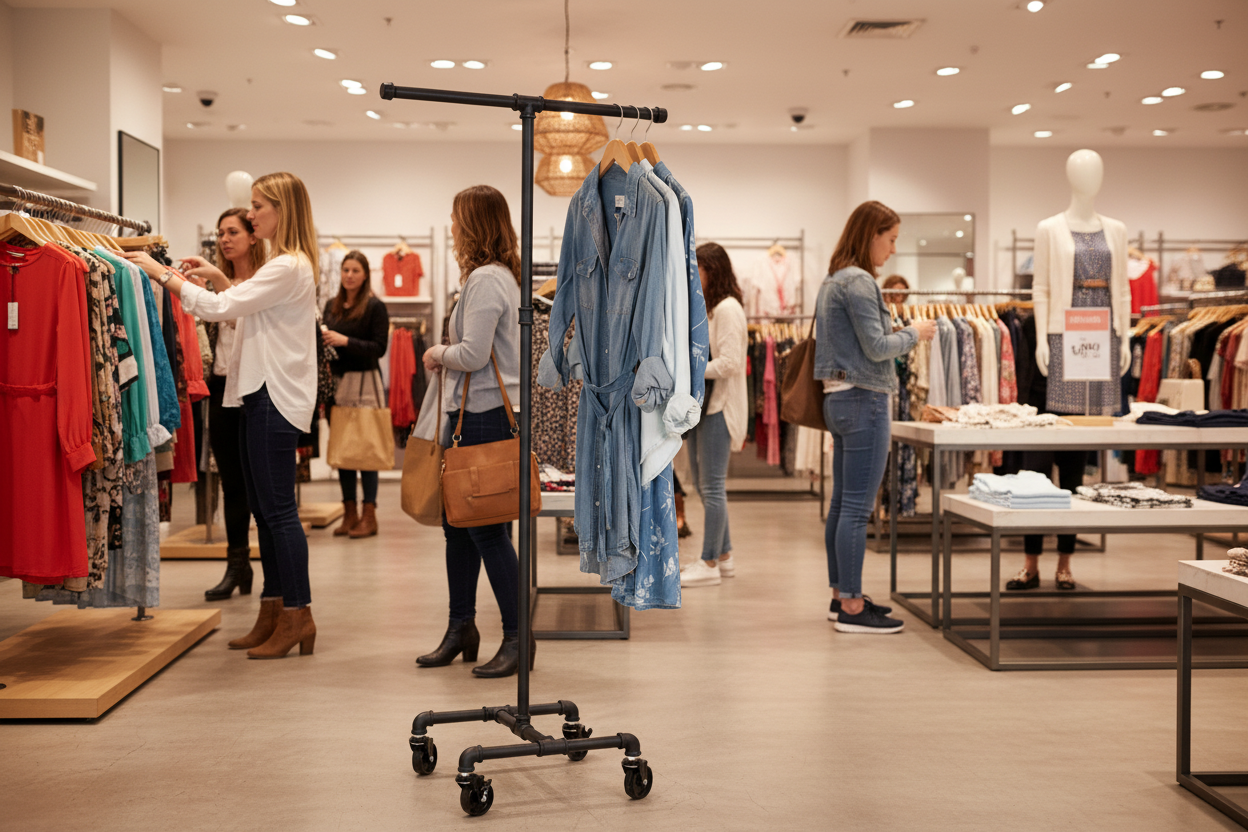 Industrial Pipe Rolling Clothing Rack | 2-Way